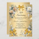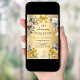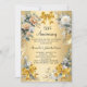 A faux gold background. Decorated with white and yellow florals, golden ribbons and bows. Personalize and add a name and details.
