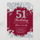 51st Birthday Invitation. Burgundy Silver Rhinestone Diamond Chalkboard Background. Elegant Birthday Bash invite. Black and White. Adult Birthday. Women Birthday. Men Birthday. For further customization, please click the "Customize it" button and use our design tool to modify this template.