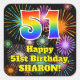 51st Birthday: Fun Fireworks Look, Rainbow # 51 Square Sticker