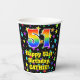 This cheerful and colourful birthday-themed paper cup design features a large number “51” having a rainbow spectrum gradient inspired pattern. It also features the message “Happy 51st Birthday,”, and a customizable name. The background features an exciting and colourful star field inspired pattern. Vibrant, colourful paper cups like this might be fun to use at a birthday celebration/party being held to celebrate somebody’s fifty first birthday. [~Z0000540]