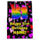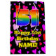 This joyful and fun birthday gift bag design features a large number “51” having a rainbow spectrum gradient inspired pattern. It also features the message “Happy 51st Birthday,”, and a personalized name. The background features a pattern of red, pink, and purple heart shapes of various sizes. A loving birthday themed gift bag like this might be used when giving a gift or present in celebration of somebody’s fifty first birthday. [~Z0000551]