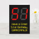 The front of this nerdy and silly birthday-themed greeting card design features a large number "51" with a red seven segment digital display style appearance, along with the message "Have a Great 51st Birthday," and a customizable name, on a black coloured background. The inside features a personalized birthday greeting message, or could perhaps be cleared and left blank if a message is to be written by hand instead. A personalized birthday card like this might be a fun way to acknowledge somebody’s fifty first birthday. [~Z0000386]