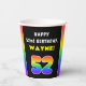 52nd Birthday: Colourful Rainbow # 52, Custom Name Paper Cups