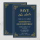 Elegant 52nd birthday invitations Men Save the date Navy Gold chic modern