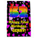 This joyful and cheerful birthday themed gift bag design features a large number “52” having a rainbow spectrum gradient inspired pattern. It also features the message “Happy 52nd Birthday,”, and a customizable name. The background features a pattern of pink, purple, and red heart shapes of various sizes. A birthday themed giftbag like this might be used when giving a gift or present in celebration of somebody’s fifty second birthday. [~Z0000551]