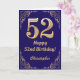 52nd Birthday Navy Blue and Gold Glitter Frame. For further customization, please click the "Customize it" button and use our design tool to modify this template.