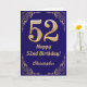 52nd Birthday Navy Blue and Gold Glitter Frame Card