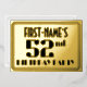 The front of this luxurious and Roaring Twenties era inspired fifty-second birthday celebration/party foil invitation card design features an editable name, an art deco style inspired number “52nd”, the message “BIRTHDAY PARTY”, and a multi-line border. The back features personalized details about the event, such as the date, time, location, and any other information that may be important. Elegant, luxurious, editable invitations like these might be used to invite guests/attendees to a birthday party being held to celebrate somebody’s 52nd birthday. [~Z0000606]
