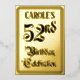 The front of this luxurious fifty-second birthday party foil invitation card design features the message “52nd Birthday Celebration” in ornate script-style text. It also features an editable name. The back features personalized details about the event, such as the date, time, location, and any other important information. Fancy, ornate, editable invitations like these might be used to invite guests to a birthday party/celebration being held to honour somebody’s 52nd birthday. [~Z0000596]