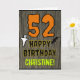 The front of this spooky and scary Halloween birthday themed greeting card design features a large number "52", along with the message "HAPPY BIRTHDAY,", and a custom name. There are also depictions of a ghost and a bat on the front. The inside features a personalized birthday greeting message, or could perhaps be cleared and left blank if a message is to be written by hand instead. A personalized birthday card like this might be a fun way to send a message in celebration of somebody’s fifty second birthday that also falls on October 31st (Halloween). [~Z0000410]