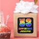 This fun, cheerful, and colourful birthday themed sticker design features a large number "53" and the message "HAPPY BIRTHDAY,", both having a rainbow spectrum gradient inspired pattern colouring, along with a bold yellow customizable name. The background is coloured black. Fun stickers like this might be used when wrapping presents being given to somebody in celebration of their 53rd birthday, or perhaps might be handed out to the attendees at a birthday celebration or party. [~Z0000480]