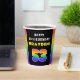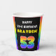 This upbeat and bold birthday paper cup design features a big number “53“ having a colourful rainbow spectrum inspired gradient pattern, along with the message “HAPPY 53rd BIRTHDAY,”, and a customizable recipient name. Birthday themed paper cups like this might be fun to use at a party being held for somebody who is celebrating their 53rd birthday. [~Z0000639]