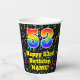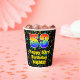 This joyful and exciting music themed birthday paper cup design features a large number “53” with a rainbow spectrum gradient inspired pattern, along with the message “Happy 53rd Birthday,”, and a customizable name. The background features a multicolored pattern having music notes and symbols of various sizes and colours. Colourful, vibrant paper cups like this might be fun to use at a birthday party/celebration being held to celebrate somebody’s 53rd birthday. [~Z0000541]