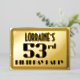 The front of this stylish and 1920s/1930s era style inspired fifty-third birthday celebration/party foil invitation card design features a customizable name, an art deco look inspired number “53rd”, the message “BIRTHDAY PARTY”, and a border pattern consisting of lines. The back features personalized details about the event, such as the date, time, place/venue, and any other information that may be relevant. Stylish, elegant, customized invitations like these might be used to invite attendees to a birthday party/gathering being held in celebration of somebody’s 53rd birthday. [~Z0000606]