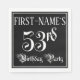 This fancy and luxurious birthday themed paper napkin design features a custom name and the message “53rd Birthday Party”. The large number “53rd” and the words “Birthday Party” are in elaborate script-style text, and the background is coloured black by default (although it can be customized). Ornate, opulent paper napkins like this might be useful at a birthday party being held to celebrate somebody’s fifty third birthday. [~Z0000563]