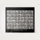 Use 54 square photos to create a personal photo collage. This modern, clean layout includes a text block in a san serif font to add a family name or a name. The background colour can be changed in the customize area.
