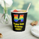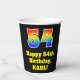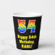 This fun and exciting birthday paper cup design features a large number “54” having a rainbow spectrum gradient inspired pattern. It also features the message “Happy 54th Birthday,”, and a customizable name. It also has a black-coloured background. Vibrant, colourful paper cups like this might be fun to use at a birthday party being held in celebration of somebody’s fifty fourth birthday. [~Z0000537]