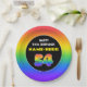 54th Birthday: Colourful Rainbow # 54, Custom Name Paper Plate