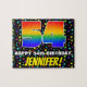 This cheerful and upbeat birthday-themed jigsaw puzzle design features a large number “54” having a multicolored rainbow spectrum inspired gradient pattern. It also features the message “HAPPY 54th BIRTHDAY,”, and a customizable recipient name. The background has a bold, colourful stars pattern. A fun, personalized birthday puzzle like this might be a fun way to send birthday wishes to somebody who is celebrating their fifty-fourth birthday. [~Z0000607]
