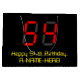 This fun and geeky birthday-themed gift bag design features a large number "54" with a red seven segment digital display inspired appearance, along with the message "Happy 54th Birthday," and a personalized name in nerdy retro style yellow text, on a black coloured background. Editable gift bags like this might be used when wrapping gifts or presents being given in honour of somebody’s fifty fourth birthday. [~Z0000389]