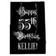 This luxurious and elegant birthday themed gift bag design features the message “Happy 55th Birthday,” in lavish script style text, on a black coloured background. It also features a personalized recipient name. A gift bag like this might be used when giving a gift or present in honour of somebody’s fifty fifth birthday. [~Z0000557]