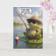A frog wearing sunglasses and a straw hat sits on a lily pad in a lake, holding a fishing rod for a 55th birthday.