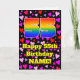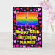 The front of this cheerful and fun birthday themed greeting card design features a large number “55” having a rainbow spectrum gradient inspired pattern. It also features the message “Happy 55th Birthday,”, and a customizable name. The background of the front features a pattern of red, purple, and pink heart shapes of various sizes. The inside has a customizable birthday greeting message, or could perhaps be cleared and left blank if a message is to be written by hand instead. A joyful, personalized birthday greeting card like this might be a fun way to send a birthday greeting message to somebody who is celebrating their fifty-fifth birthday. [~Z0000551]