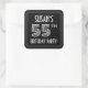 This elegant fifty-fifth birthday celebration/party square sticker design features a personalized name, a fancy art deco look inspired number “55th”, the message “BIRTHDAY PARTY!”, and a border pattern consisting of lines. It has a black-coloured background by default, but it can be customized to a different colour, if desired. Stickers like these might be used or given out at a birthday party held for somebody who is celebrating their 55th birthday, or perhaps used when wrapping presents/gifts or preparing invitations for such an event. [~Z0000617]