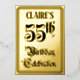 The front of this opulent fifty-fifth birthday celebration/party foil invitation card design features the message “55th Birthday Celebration” in elegant script-style text. It also has a personalized name. The back features personalized details about the event, such as the date, time, place/venue, and any other information that may be important. Ornate, elaborate, customized invitations like these might be used to invite guests to a birthday celebration being held to honour somebody’s fifty-fifth birthday. [~Z0000596]