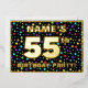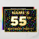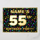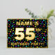 The front of this fun and upbeat fifty-fifth birthday party foil invitation card design features a custom name, a large number “55th”, the message “BIRTHDAY PARTY!”, and a border. The background of the front has an exciting, colourful starfield pattern. The back features personalized details about the event, such as the date, time, place, and any other information that may be useful. Customizable invitations like these might be a fun way to invite attendees to a birthday gathering being held in celebration of somebody’s 55th birthday. [~Z0000600]