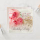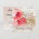 A beautiful delicate image of a rose in soft pink tones. In the background is a string of pearls. The whole effect is softened by a delicate feather. A delightful 55th birthday party invitation. Change the back to your own party details