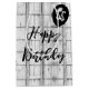 A symmetrical pattern features vertical and horizontal wooden panels with a worn, rustic appearance, showcasing a faded white finish with a black balloon for a 55th birthday.