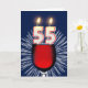 A birthday glass of wine with candles. The candles are made up of the number 55, for an 55th birthday. Fireworks are exploding in the background. A birthday card suitable for anybody, male or female.