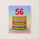 This colourful and cheerful birthday themed jigsaw puzzle design features a cartoon-style depiction of a three-tier birthday cake having number-shaped candles on top showing the age “56“, along with the message “HAPPY 56TH BIRTHDAY,”, and an editable recipient name. The background features a multicolored pastel rainbow spectrum inspired gradient pattern. A fun, personalized birthday puzzle like this might be given in celebration of somebody’s fifty-sixth birthday. [~Z0000621]
