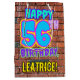 The front of this fun birthday-themed gift bag design features the message “HAPPY 56TH BIRTHDAY,” having a colourful, vibrant, graffiti-inspired appearance, along with an editable recipient name. The background features a pattern inspired by the look of a brick wall. A birthday themed gift bag like this might be a fun way to wrap a gift or present being given to celebrate somebody’s 56th birthday. [~Z0000536]