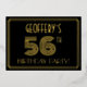 The front of this Roaring Twenties inspired fifty-sixth birthday party foil invitation features a personalized name, a large art deco style inspired number “56TH”, the message “BIRTHDAY PARTY!”, and a border pattern consisting of lines. The front also has a black-coloured background by default, but it can be customized to a different colour if desired. The back features personalized details about the event, such as the date, time, location, and any other relevant information. Elegant, luxurious, personalized invitations like these might be used to invite guests to a birthday party/celebration being held in celebration of somebody’s 56th birthday. [~Z0000590]