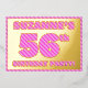 The front of this bold and fun fifty-sixth birthday celebration/party foil announcement/invitation card features a personalized name, a large number “56th”, the message “BIRTHDAY PARTY!”, and a border, all featuring a girly light pink and dark pink lines pattern. The back features personalized details about the event, such as the date, time, location/venue, and any other relevant information. Editable invitations like these might be used to invite attendees to a birthday party/gathering being held to honour somebody’s 56th birthday. [~Z0000597]