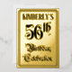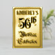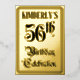The front of this fancy fifty-sixth birthday party foil invitation/announcement card design features the message “56th Birthday Celebration” in opulent script-style text. It also has a personalized name. The back features personalized details about the event, such as the date, time, venue/place, and any other information that may be useful. Elaborate, luxurious, customized invitations like these might be used to invite guests to a birthday celebration being held in celebration of somebody’s 56th birthday. [~Z0000596]