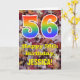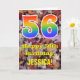 The front of this colourful, autumn-themed, and nature-inspired birthday greeting card design features a large number "56" having a rainbow spectrum gradient inspired pattern. It also features the message "Happy 56th Birthday,", and an editable name. The background of the front of the card features a rustic fallen autumn leaves pattern. The inside features an editable birthday greeting message, or could perhaps be cleared and left blank if a message is to be written by hand instead. A custom birthday card like this might be a fun way to send birthday wishes to somebody who is celebrating their fifty sixth birthday. [~Z0000384]