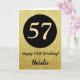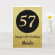 57th Happy Birthday Black and Gold Parties scintillant Card avec nom personnalisé. Pour plus de personnalisation, cliquez sur le bouton "Customiser" et utilisez notre outil de conception pour modifier ce modèle.