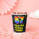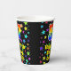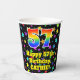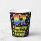 This colourful and fun birthday themed paper cup design features a large number “57” having a rainbow spectrum gradient inspired pattern. It also features the message “Happy 57th Birthday,”, and a personalized name. The background features a multicolored star field inspired pattern. Vibrant, colourful paper cups like this might be fun to have at a birthday party/celebration being held to celebrate somebody’s 57th birthday. [~Z0000540]