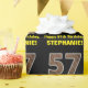 This rustic and fun birthday-themed wrapping paper design features a large number "57" with a faux wood grain inspired look pattern, along with the message "Happy 57th Birthday,", and an editable name. Wrapping paper like this might be used when wrapping gifts being given to somebody in celebration of their fifty seventh birthday. [~Z0000432]