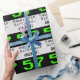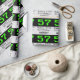 This nerdy and fun birthday themed wrapping paper design features a large green vintage video gaming style number "57" on a black coloured background. It also features the birthday greeting message "Happy 57th Birthday,", and a name that can be personalized. Silly wrapping paper like this might be used to wrap gifts or presents being given to an engineer, a computing historian, or somebody who really likes video gaming, in celebration of their 57th birthday. [~Z0000403]