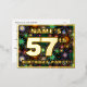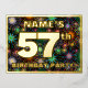 The front of this exciting fifty-seventh birthday party foil invitation postcard design features an editable name, a large number “57th”, the message “BIRTHDAY PARTY!”, and a border. The background of the front has an eye-catching, multicolored bursting celebratory fireworks-inspired pattern. The back features personalized details about the event, such as the date, time, location, and any other information that may be relevant. Customized invitations like these might be a fun way to let guests/attendees know about a birthday gathering being held to celebrate somebody’s 57th birthday. [~Z0000609]
