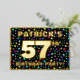 The front of this joyful fifty-seventh birthday celebration/party foil invitation card design features a custom name, a large number “57th”, the message “BIRTHDAY PARTY!”, and a border. The background of the front has an eye-catching, multicolored pattern of star shapes. The back features personalized details about the event, such as the date, time, place, and any other information that may be relevant. Personalized invitations like these might be a fun way to invite guests to a birthday gathering/party being held to honour somebody’s 57th birthday. [~Z0000600]