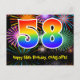 58th Birthday – Fun Fireworks Pattern + Rainbow 58 Postcard