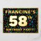 The front of this joyful and vibrant fifty-eighth birthday party/celebration foil invitation card design features a personalized name, a large number “58th”, the message “BIRTHDAY PARTY!”, and a border. The background of the front features a fun, colourful musical symbols and notes pattern. The back features personalized details about the event, such as the date, time, location, and any other relevant information. Personalized invitations like these might be a fun way to invite guests to a birthday gathering being held in celebration of somebody’s 58th birthday. These might be extra special for a music-themed birthday party. [~Z0000601]