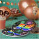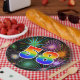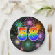 This fun, cheerful, and colourful paper plate design features a large number "58" containing a rainbow spectrum gradient inspired pattern colouring. It also features a exciting and vibrant bursting celebratory fireworks inspired pattern. The background is coloured black. Fun paper plates like this might be used at somebody’s fifty eighth birthday party, a fifty eighth anniversary celebration, or some other 58th event. [~Z0000490]