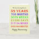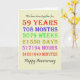 59th anniversary card counting down the years, days, months, hours, and minutes that you have been married. Funny, but with a romantic verse inside. A card to give pause for thought! Leap years have been taken into account!