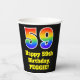 This colourful and exciting birthday themed paper cup design features a large number “59” having a rainbow spectrum gradient inspired pattern. It also features the message “Happy 59th Birthday,”, and a personalized name. The background is coloured black. Vibrant, colourful paper cups like this might be fun to use at a birthday celebration/party being held to celebrate somebody’s fifty ninth birthday. [~Z0000537]